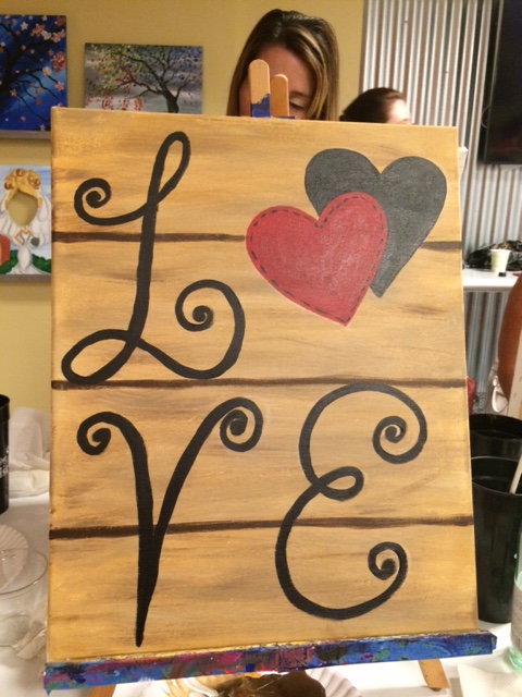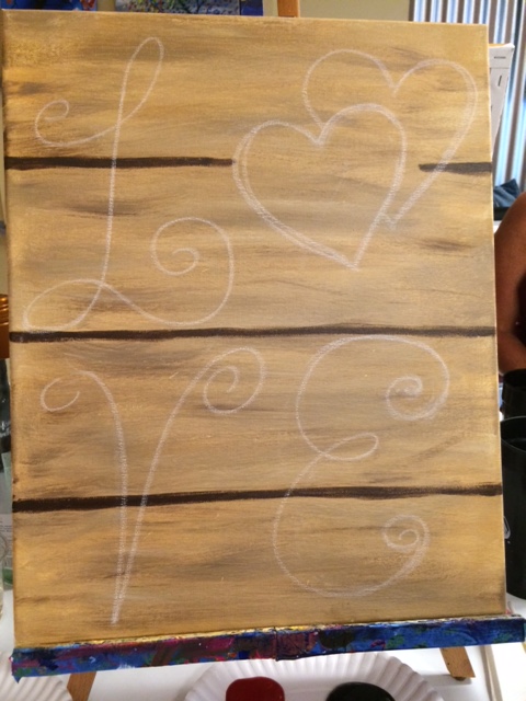 If you have never tried this before I highly recommend it, just like stamping I got lost in creating and before you knew it I had a painting I was so proud of! When I got home my husband hung it up in our bedroom, a fitting place for it I think!